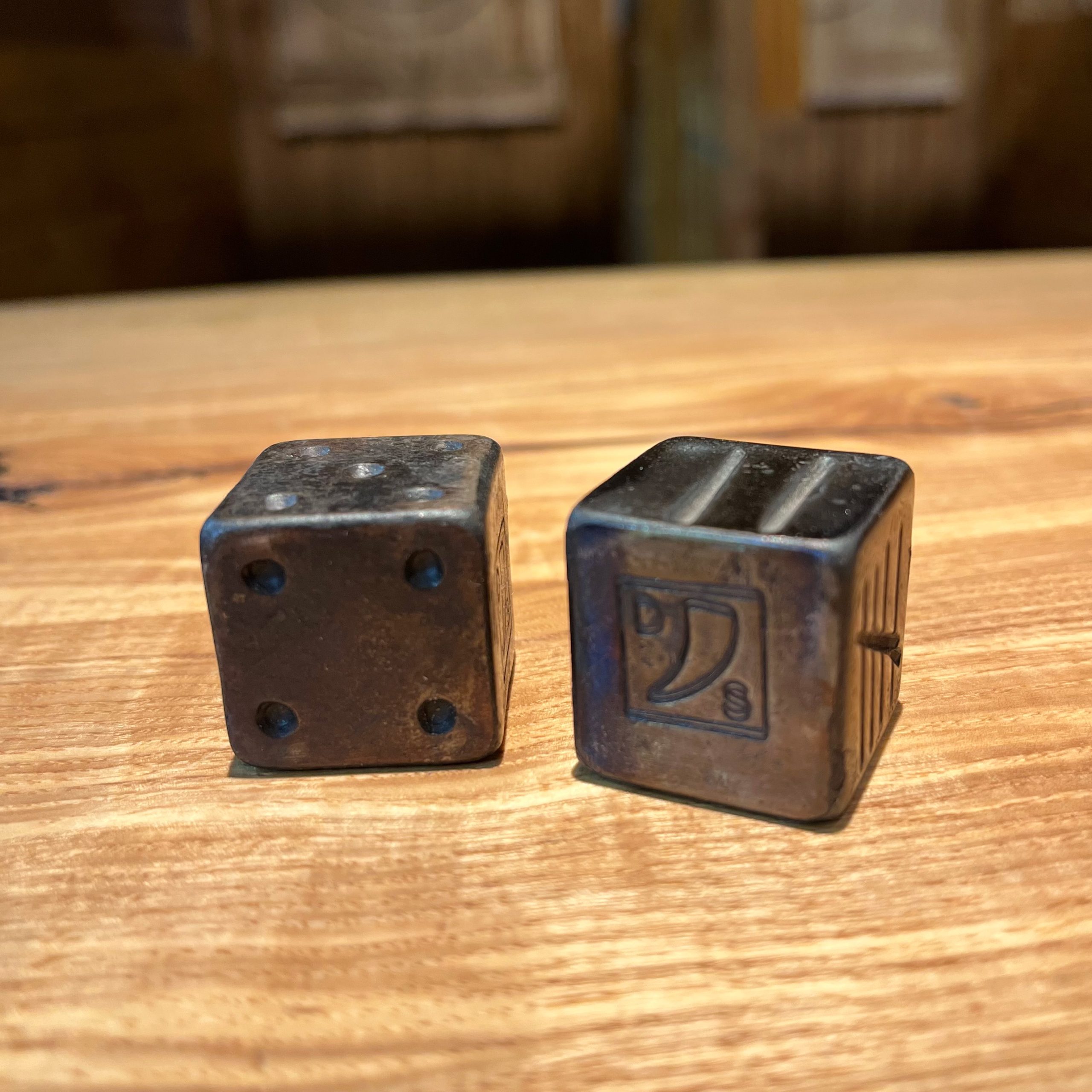 Get ready for game night with our Drunken Dice! Each medium die has a width of approximately 0.75 inch. Each large die has a width of approximately 1 inch.
